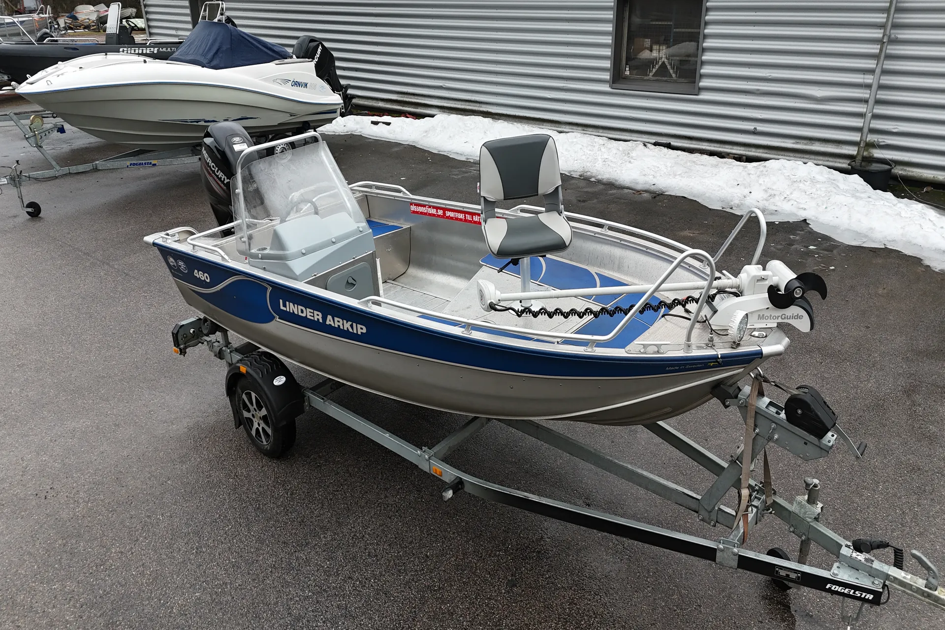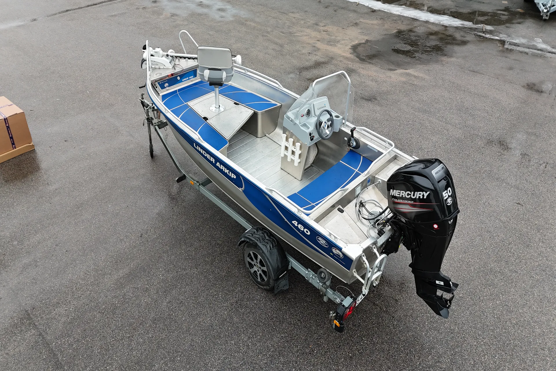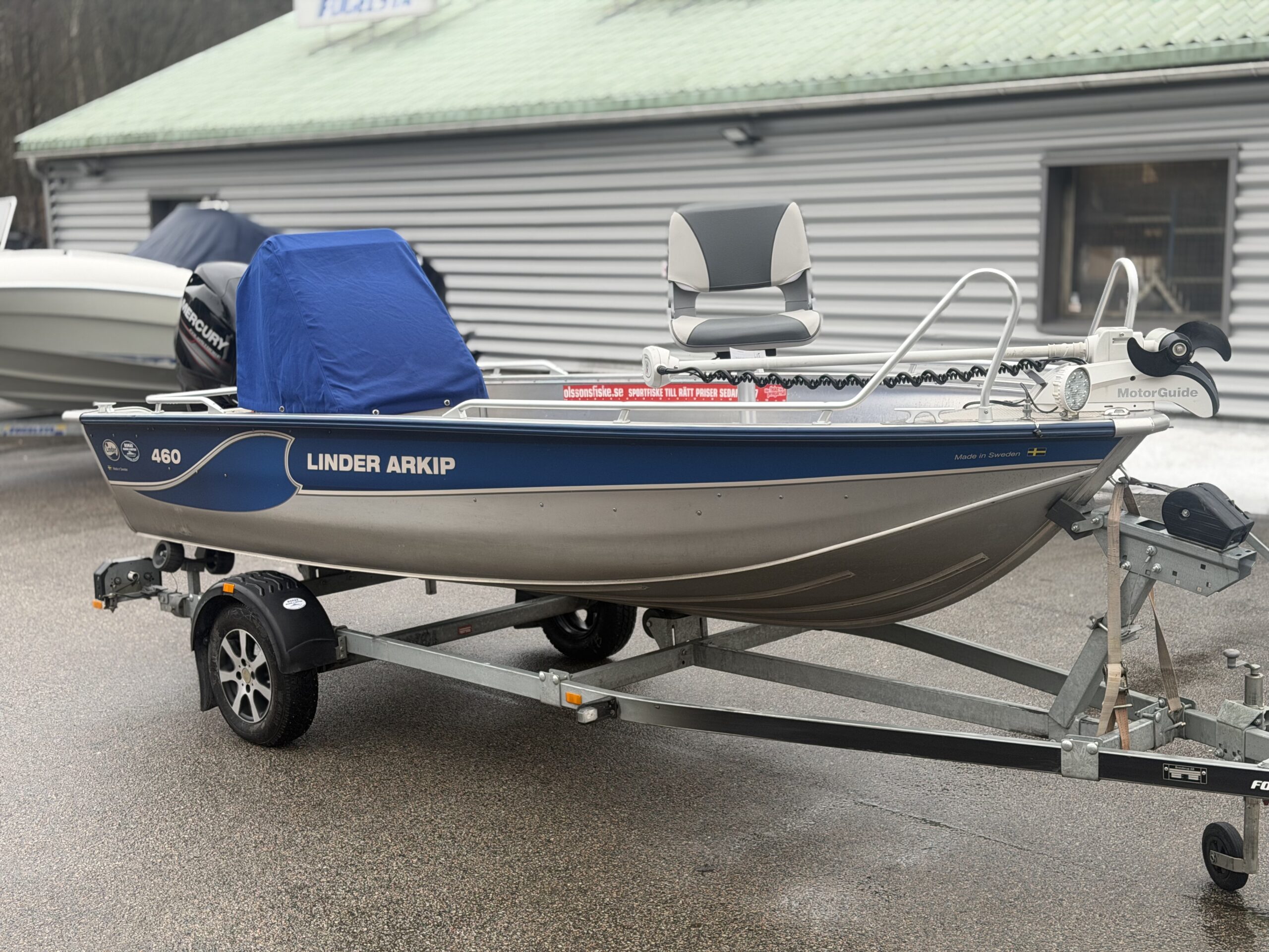 En välvårdad Linder 460 Arkip med Mercury F50 från 2018. Hydraulstyrning sitter monterad. Motorn levereras nyservad. Det följer med en Motorguide Xi5 med snabbfäste monterat på båten.