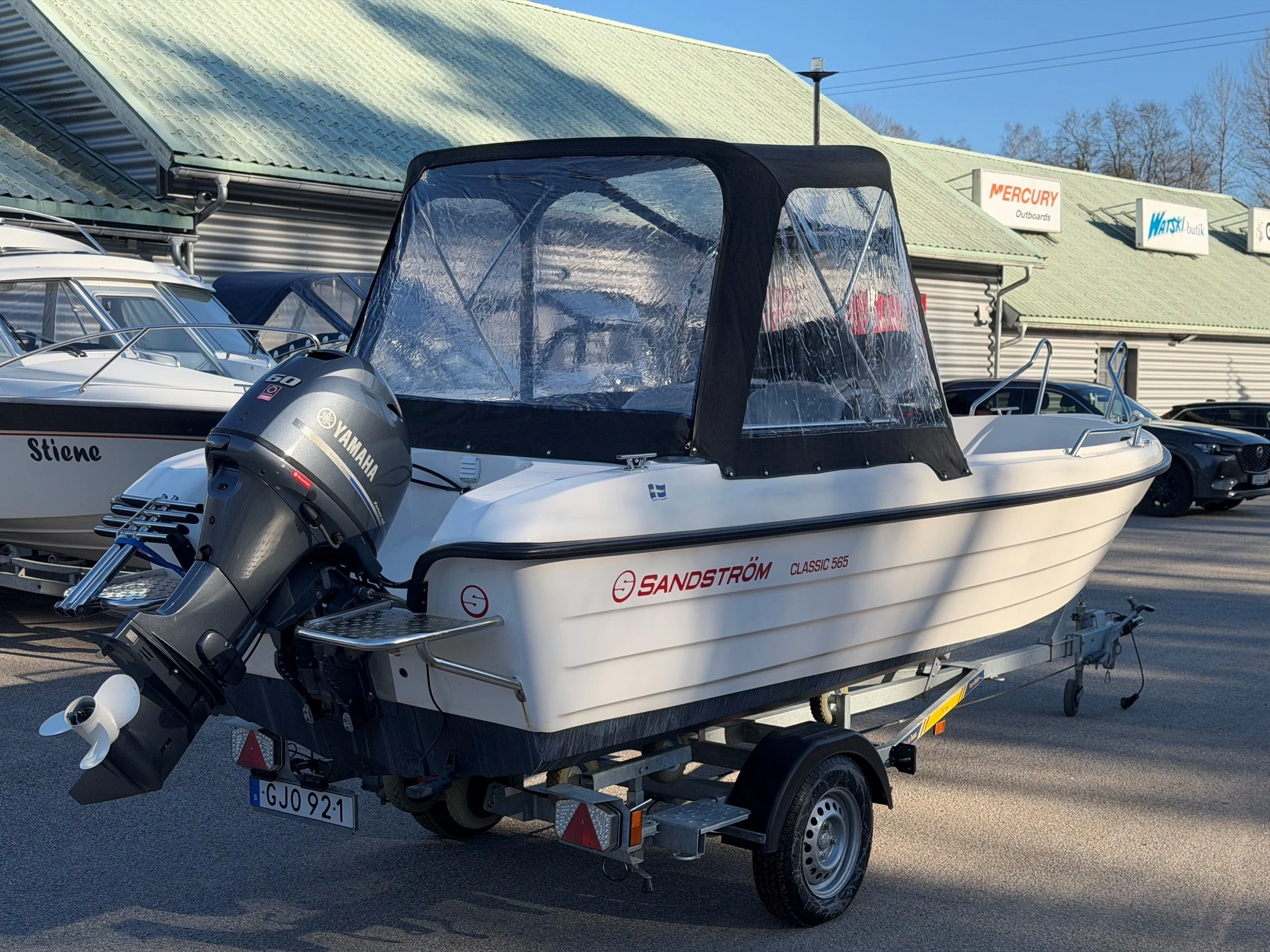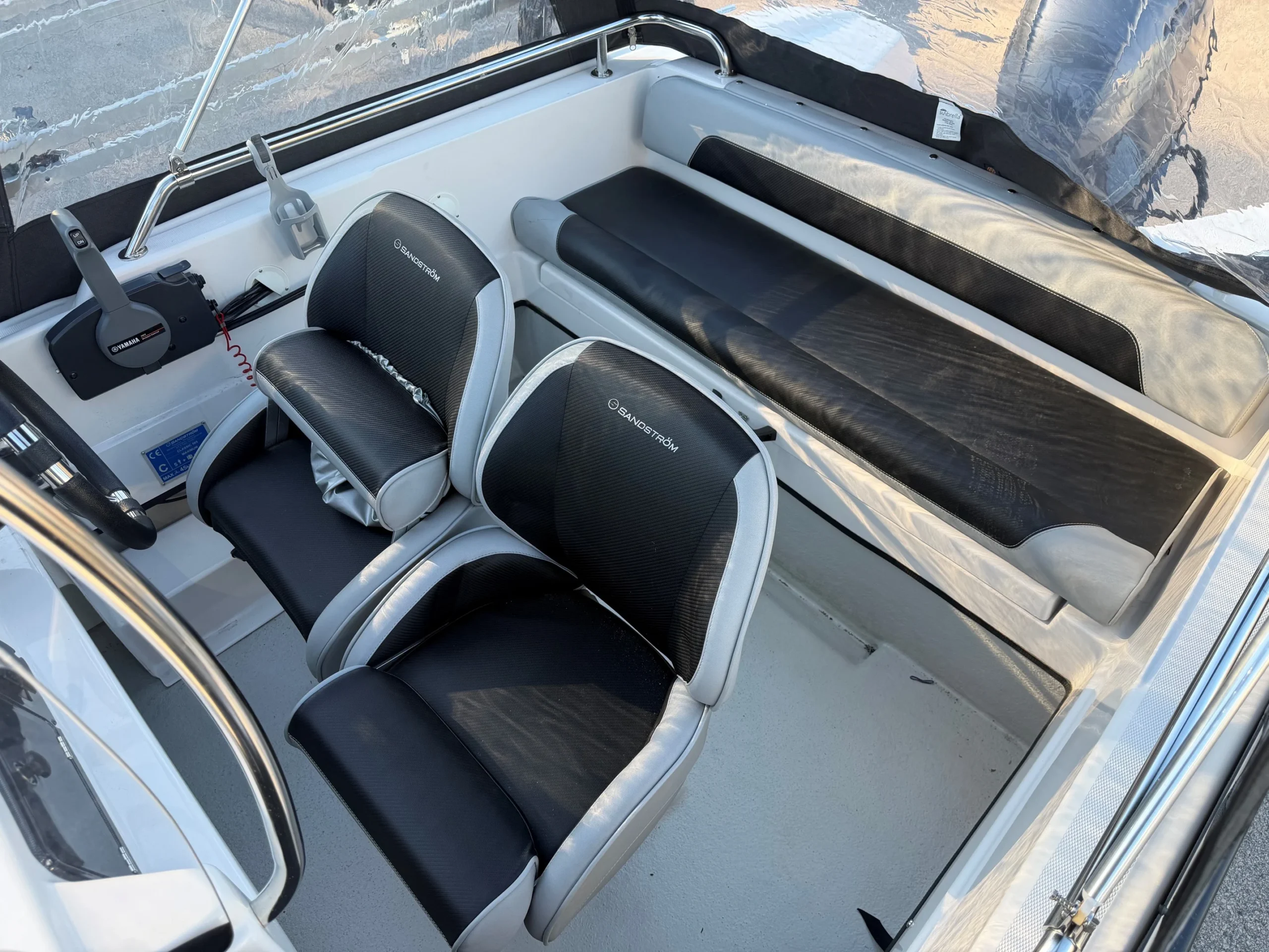 En mycket välvårdad & välutrustad Sandström 565 Classic som inte har många driftstimmar. Båten är utrustad med komplett dynsats, ekolod och GPS, bottenmålning, akterkapell och plattformar akter.