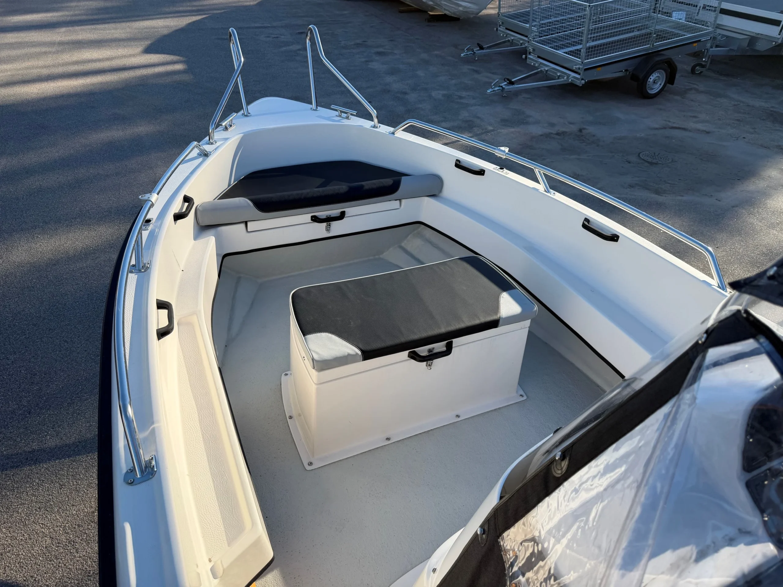 Två personer ryms på var sin stol där man sitter skyddat från fartvinden. Classic-familjens karakteristiska egenskaper – klinkimiterat utförande, kraftig köl, bred durk och en rejäl helgjuten reling – finns givetvis även hos Classic 565. Söker du en båt som klarar det mesta på sjön, då har du hittat rätt.