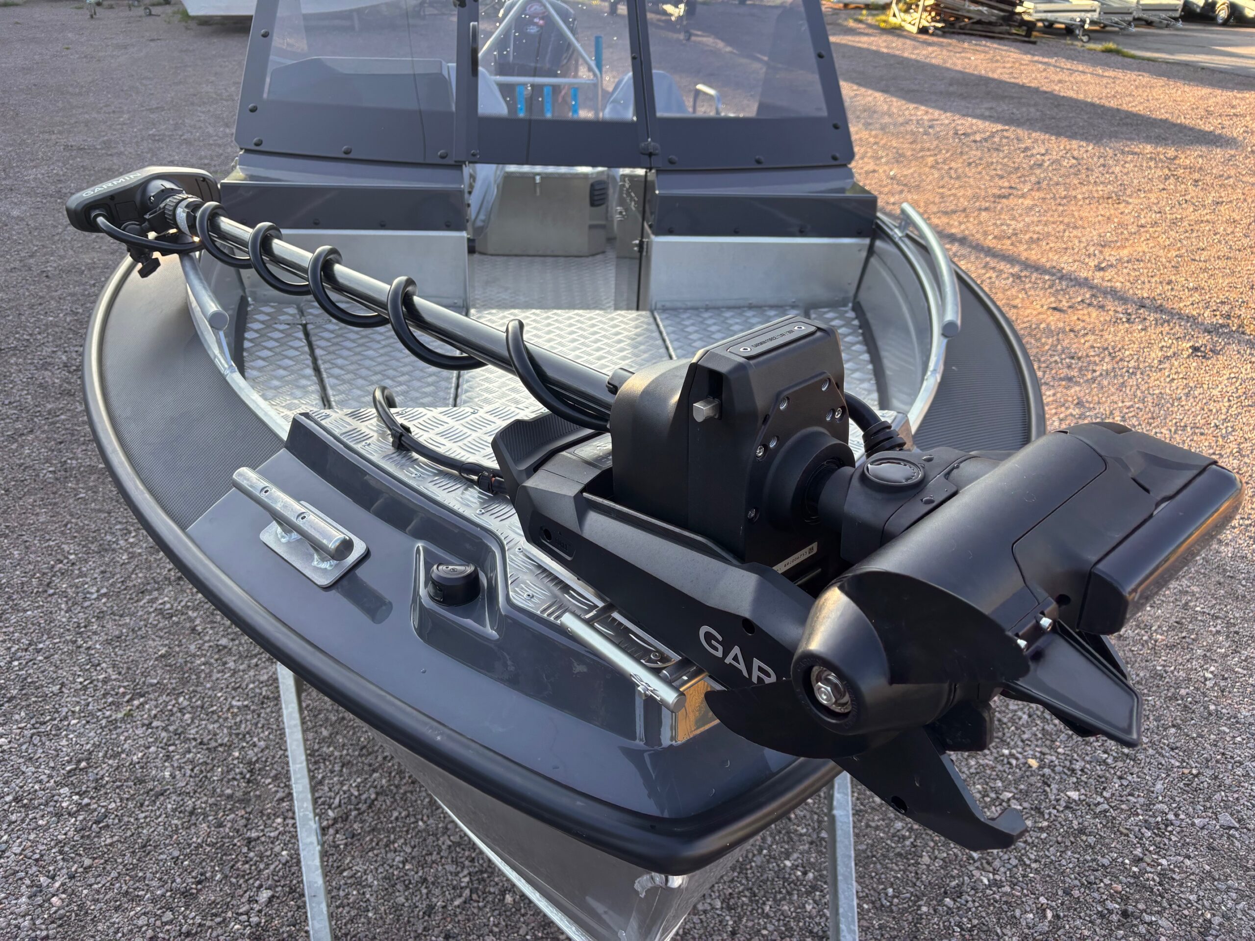 Utrustad med Mercury F115 ProXS – en motor känd för sin kraft, driftsäkerhet och effektivitet – samt det absolut bästa för sportfiskaren: Garmin Force Kraken frontmonterad elmotor. Med Garmin 92sv UHD2 och GT56-givare infälld i instrumentpanelen har du marknadens kanske vassaste kombination av ekolod och navigation, dessutom nätverkad med elmotorn.