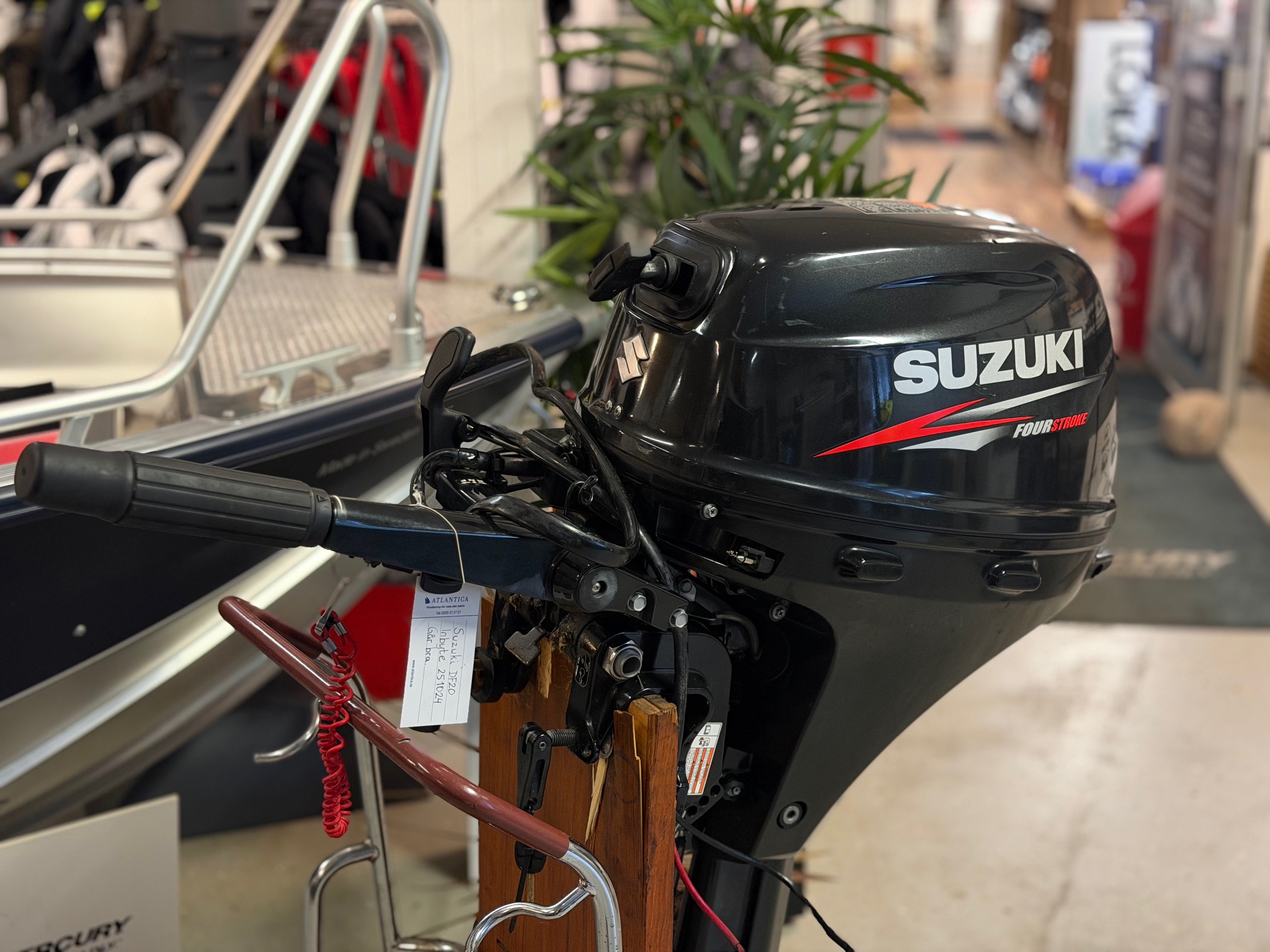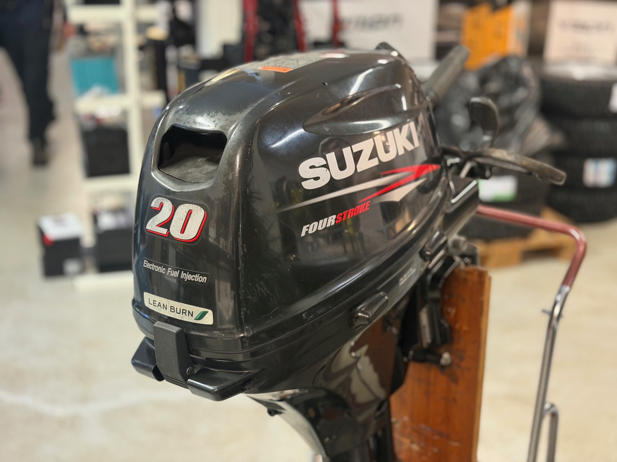 Begagnad Suzuki DF20 med lång rigg och elstart.